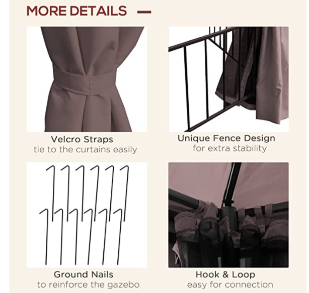 - STURDY AND STABLE: The 6 supporting pipes on top and 6 upright posts on the corners of this backyard gazebo ensures superior durability. 12 ground stakes are used to secure the legs firmly to the ground to provide extra support on windy days. NOTE 1: Accumulated snow must be removed from the roof. 2: Just so you know: this item ships and arrives in separate boxes. Delivery times may vary with each box. Box quantity: 2