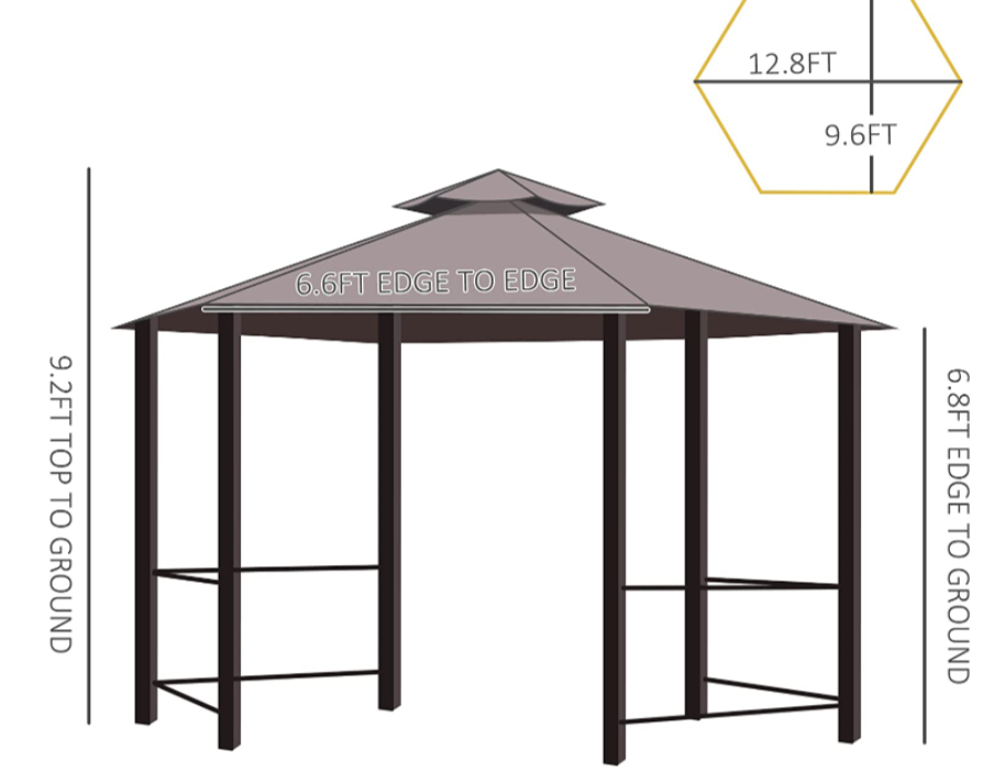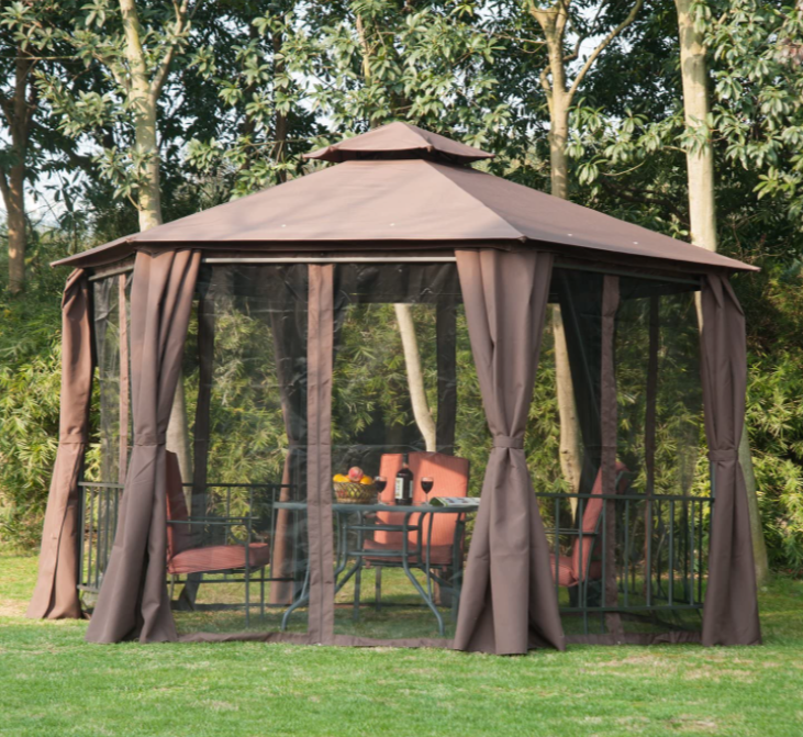 - UNIQUE STYLE: The hexagon shape and two-tiered canopy top of this outdoor gazebo canopy provide a unique yet stylish centerpiece to any outdoor setting. Perfect for placement in your backyard, garden or lawn this piece can also be used as the shelter for special events including weddings, birthday parties, and picnics.