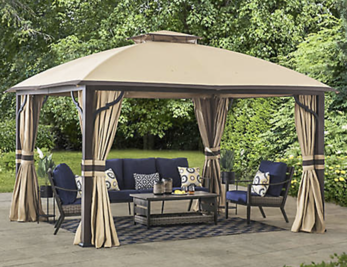 This sturdy 12′ x 10′ Fabric Top Gazebo will create the perfect space for shade and entertainment during the warm weather months. An included mosquito netting and privacy curtain provide both comfort and seclusion at any time.