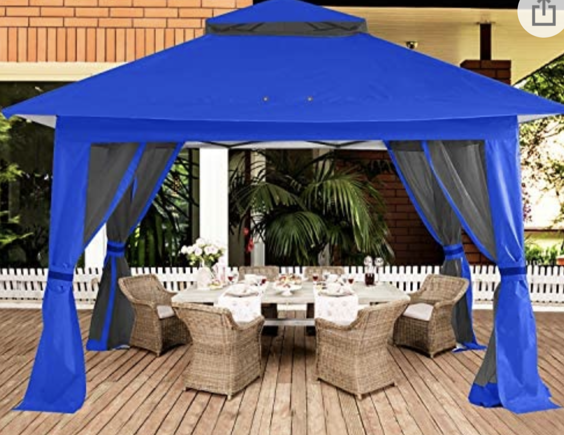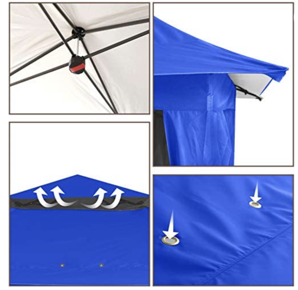 【Easy Setup & Portable】 13X13 Pop up Gazebo designed with Patented Central Lock Technology, setup is easy, efficient and hassle-free. This gazebo is lightweight and comes with a convenient carrying bag, so you can easily bring the gazebo to anywhere.- 【Larger Shadow Area】This gazebo features an extended awning around the eaves of the tent, providing additional shade coverage. Our 13×13 gazebo tent provide 169 square feet of coverage, is roomy enough to accommodate at least 8 people and some chairs for your party.