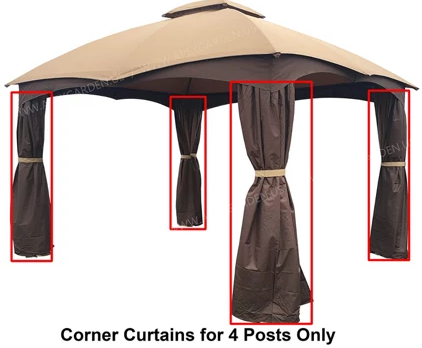 - Color: Brown. Four pieces of corner curtains for cover four poles of your gazebo. Storage your existing curtains and mosquito net inside the corner curtains when not using them. IT IS NOT A SUNSHADE PANEL, IT CAN ONLY COVER THE POLES.