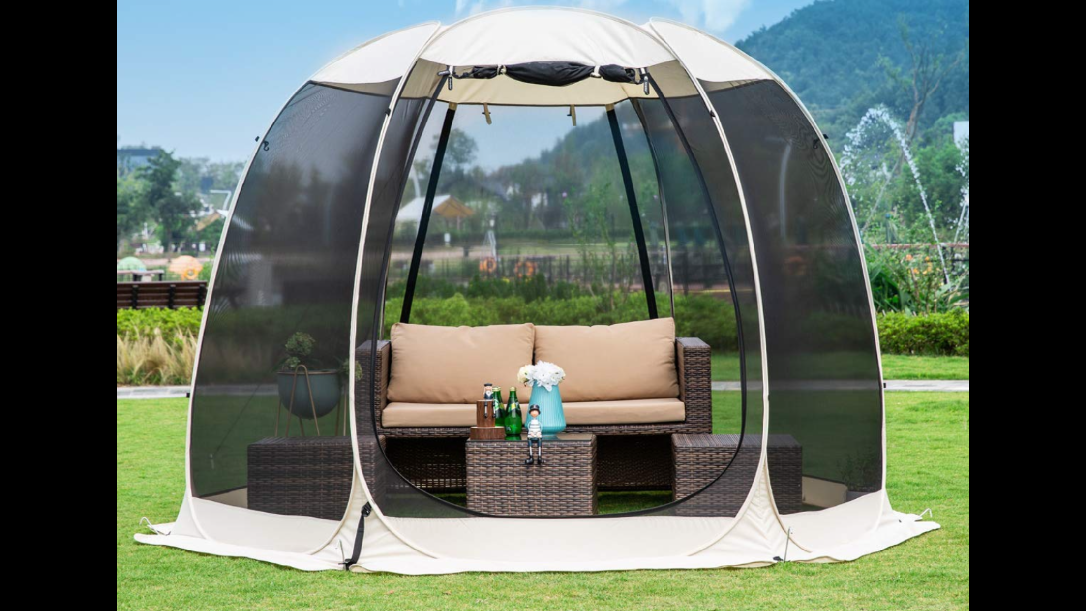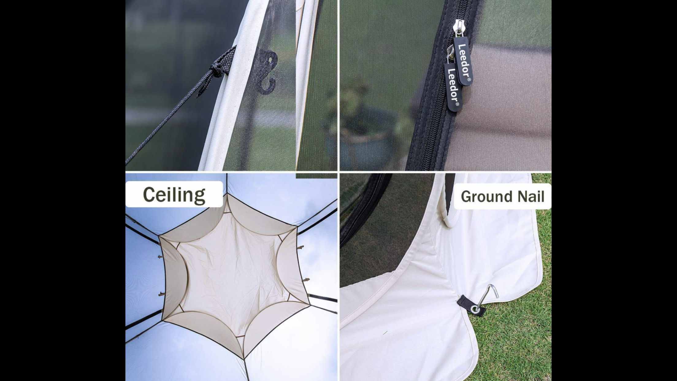 - 【STRONG STABILITY】High-strength fiberglass rods ensure safety during use ,Total 6 elongated sandbags,12 guylines and 12 mounting stakes, provide extra stability in windy conditions.Two large entrance doors with double side silicone zippers, easy to zip from inside and outside alike.There are Multiple hooks inside the room to hang your coat, handbag or other items.