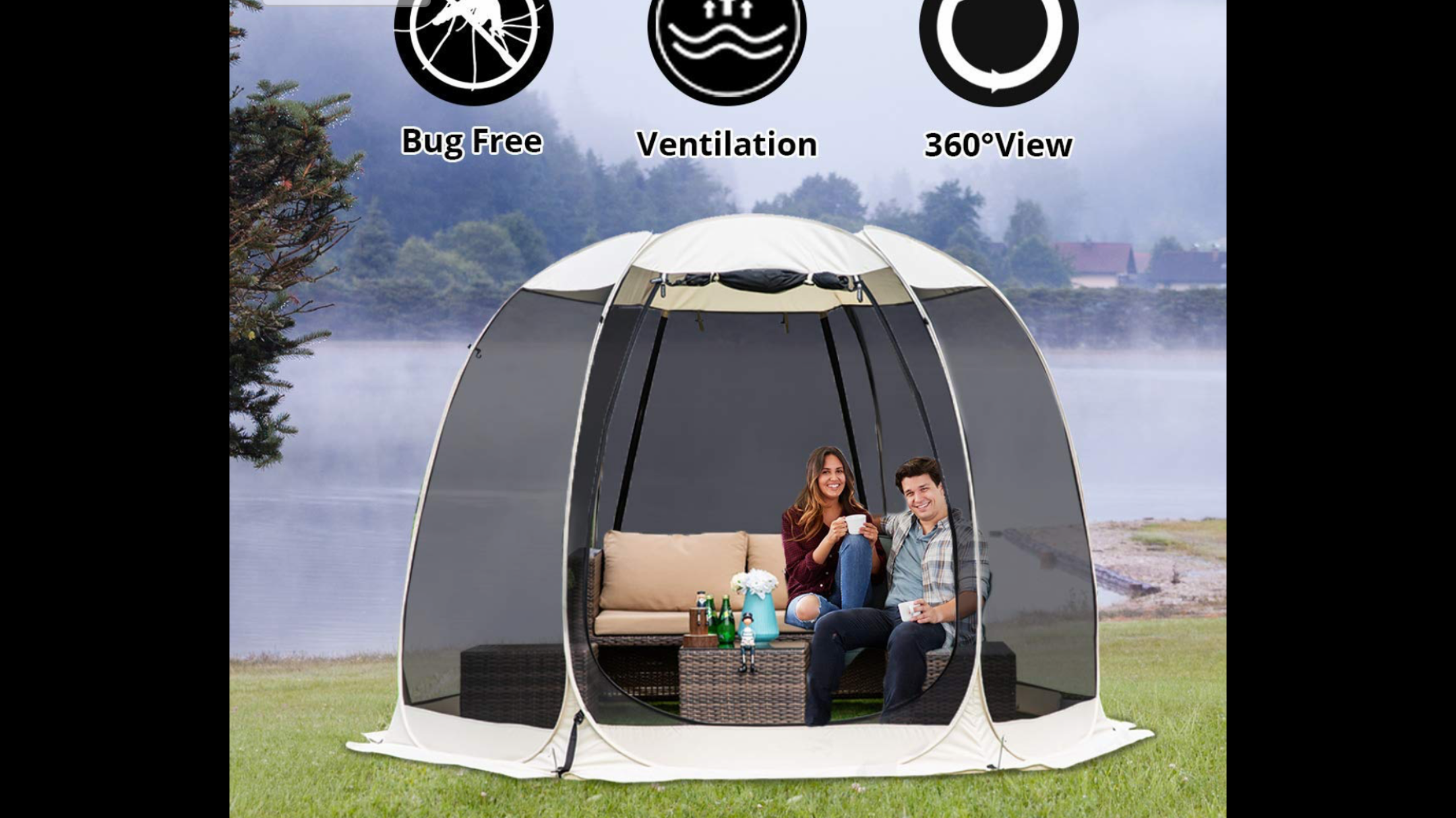 I bought this for use with our RV to protect us from the bugs. It goes up superfast! Sized right for 2 of us and our comfortable camping chairs. Folds down flat when not in use and fits snugly back in the carry bag. I highly recommend for camping or backyard use.