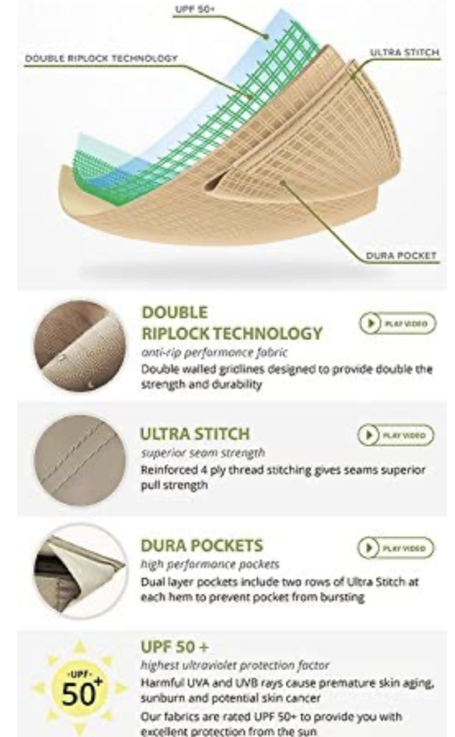 - UPF 50+, water resistant, CPAI-84 fire retardant