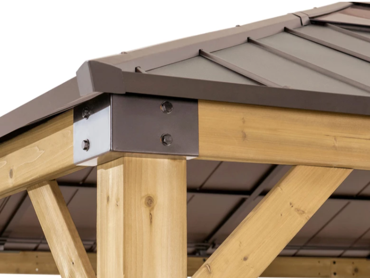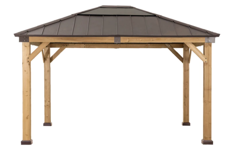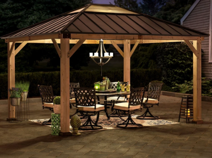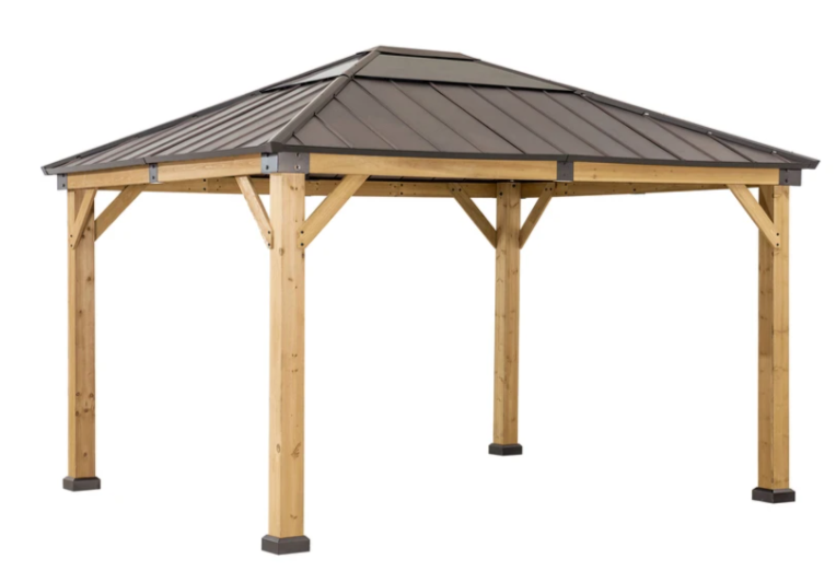 Expand your living space by bringing the indoors outside and creating your end-of-the-day oasis that’s the perfect spot for entertaining family and friends. This 11 ft. x 13 ft. gazebo by the world’s leading ready-to-assemble outdoor structure maker, Sunjoy, creates the perfect outdoor setting for any time of the year. Spend all four seasons enjoying a covered spot outdoors under the cedar wood frame with a sturdy rust-resistant powder-coated steel and polycarbonate roof top that will stand the test of time. The polycarbonate skylight provides needed shade on hot sunny days while allowing in natural light. Set the mood by suspending a chandelier from the incorporated ceiling hook for additional functional light and high design. With straight-forward, easy-to-follow assembly instructions you’ll be relaxing with your beverage of choice in your favorite new outdoor living space for years to come.
