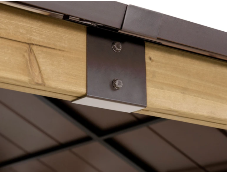 - Durable brown steel and polycarbonate skylight roof provides UV protection and natural light